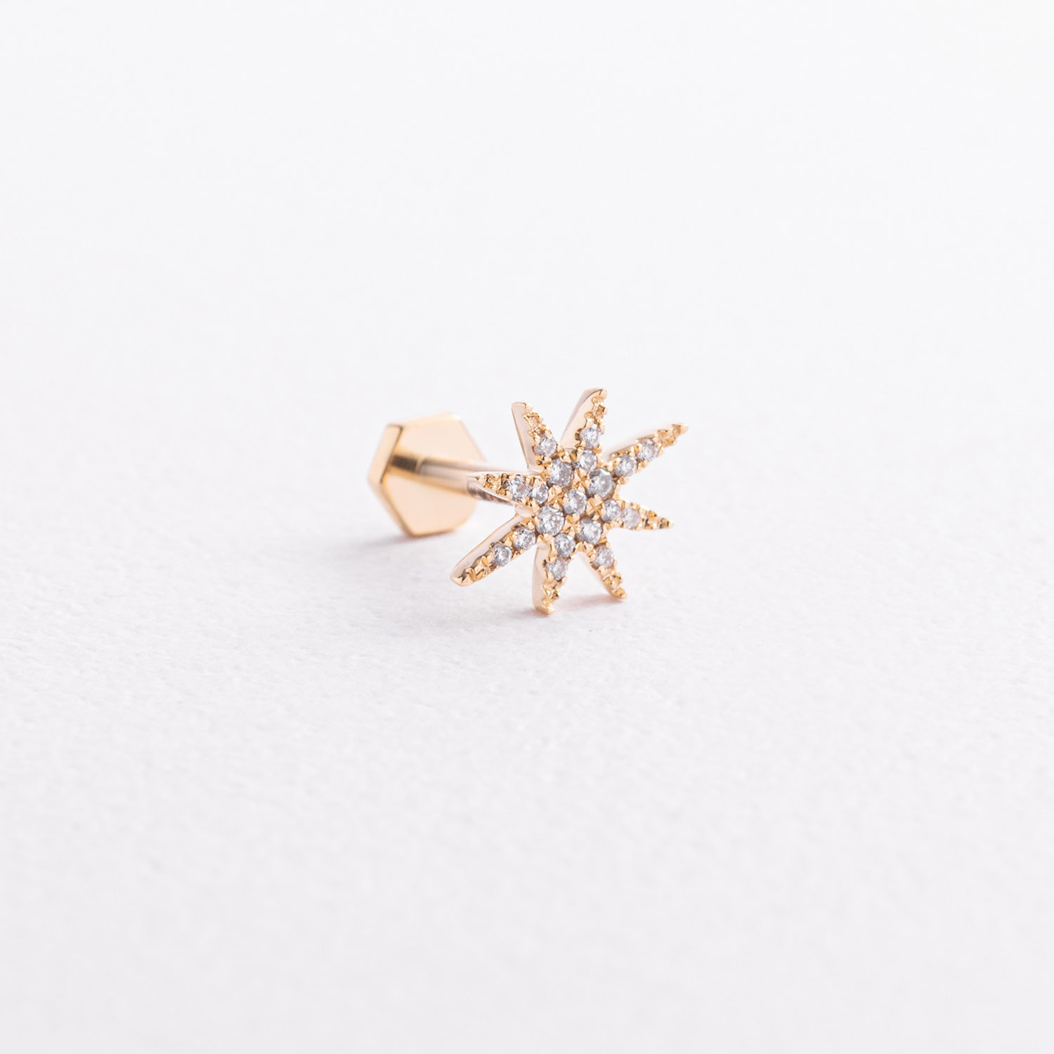 Одиночна золота сережка для хелікса "Зірочка" (діаманти)