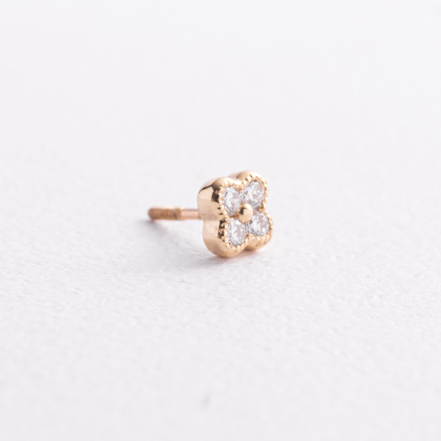 Повсякденна золота сережка для хеліксу "Конюшина" (діаманти)
