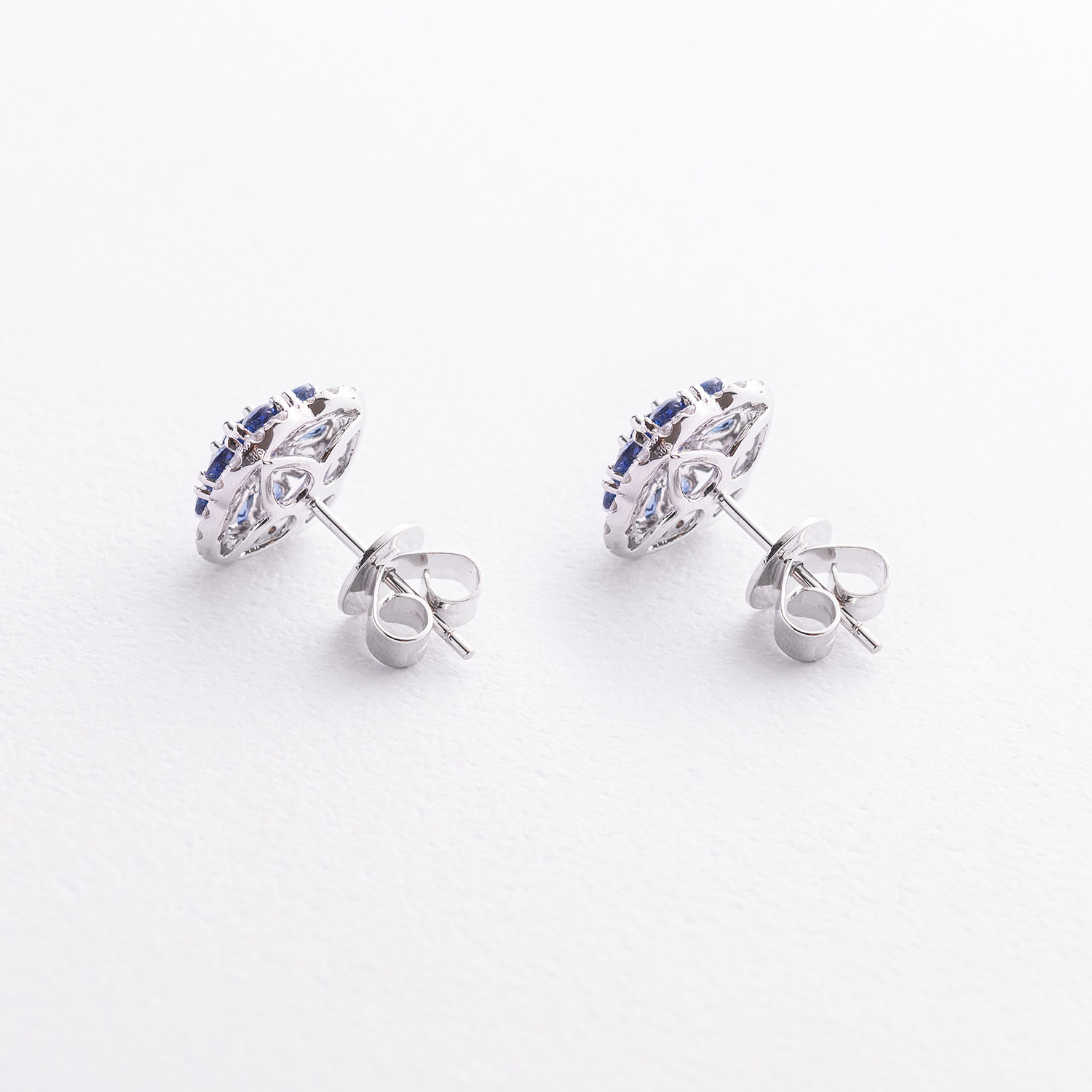 Сережки - пусети "Конюшина" в білому золоті (діаманти, сапфіри) сб0718mi от ювелирного магазина Оникс - 2