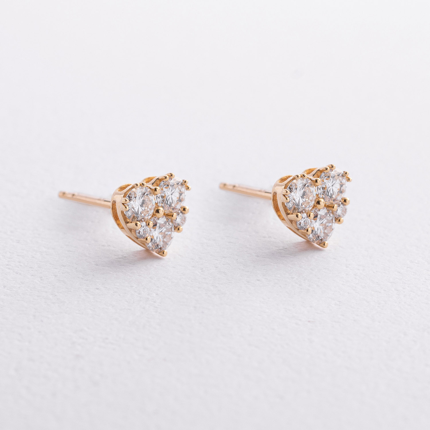 Сережки - пусети "Сердечки" у жовтому золоті (діаманти) сб0726mi