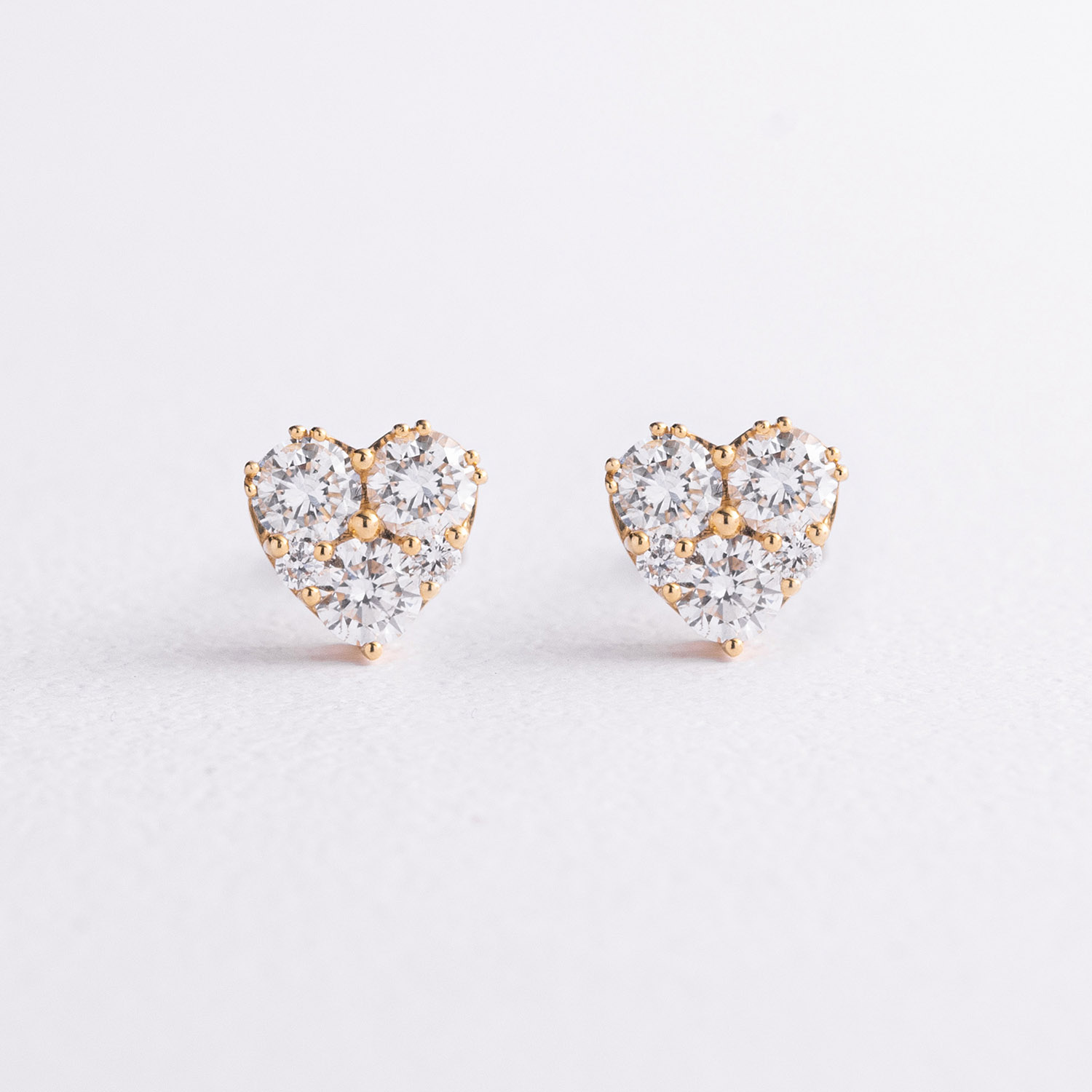 Сережки - пусети "Сердечки" у жовтому золоті (діаманти)