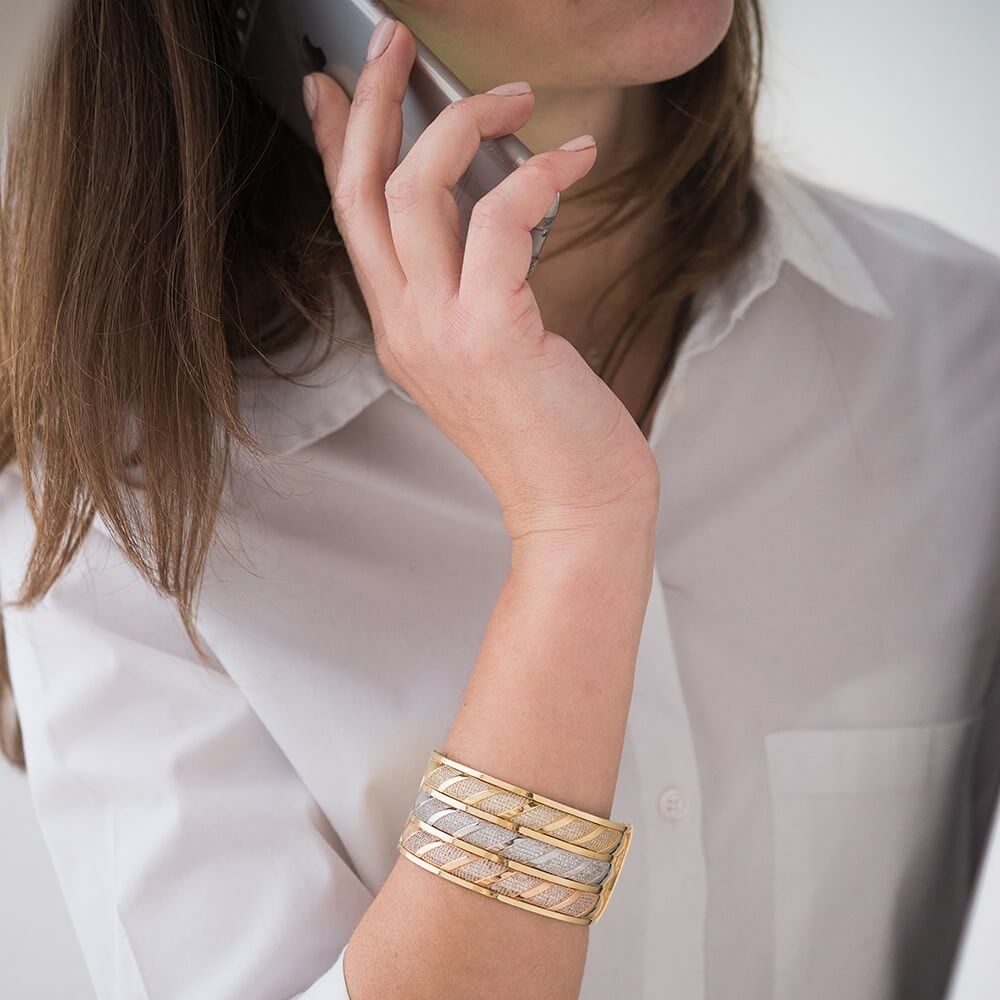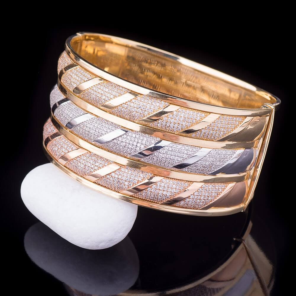 Жіночий браслет з жовтого і білого золота з фіанітами
