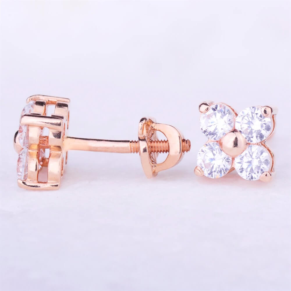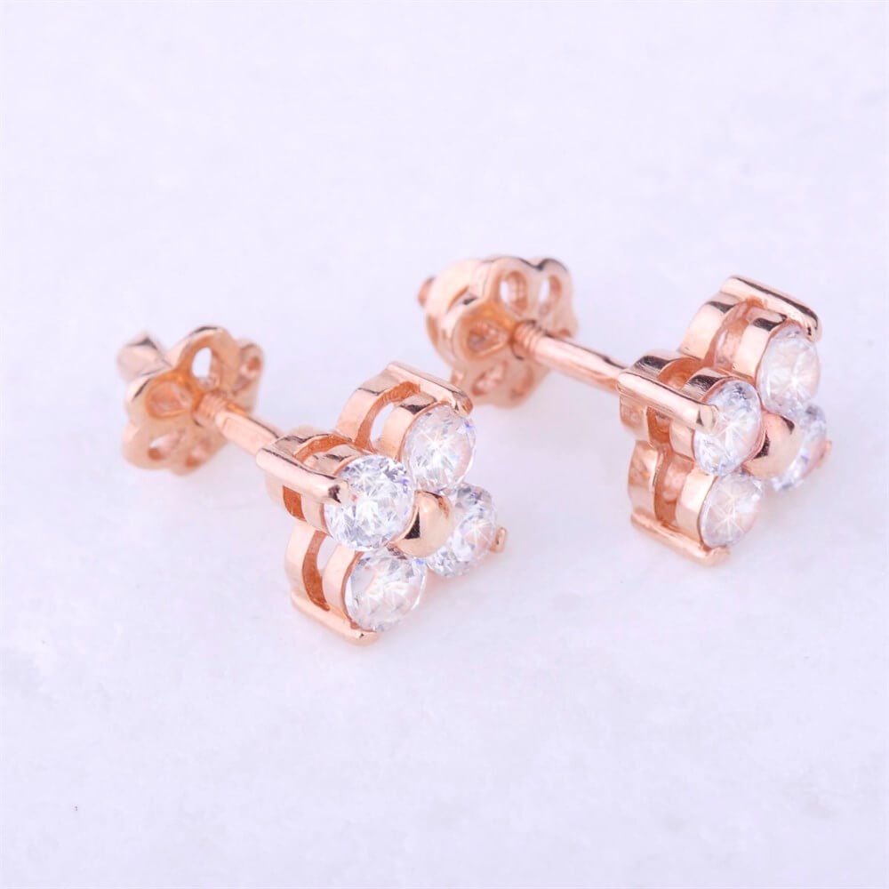 Золоті сережки-пусети з фіанітами "Квіточка" (8 мм)